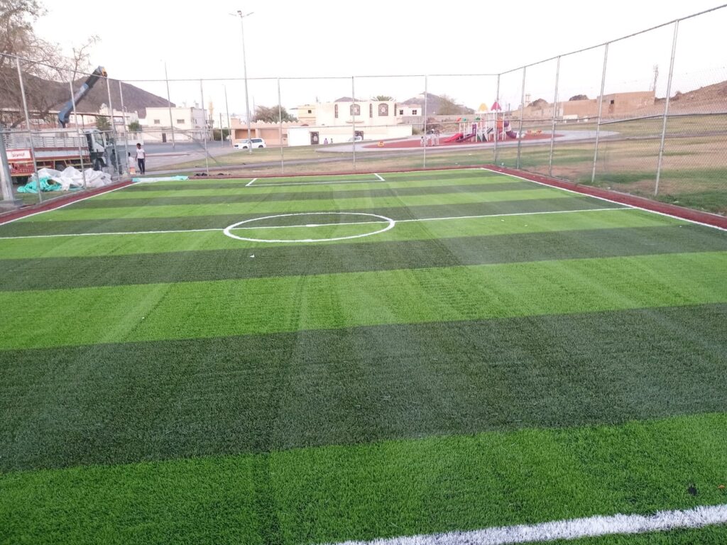 شركه انشاء ملاعب رياضيه بالفجيرة تأكد ان اختيارك لتزيين منزلك او ملعبك باستخدام العشب الصناعي او النجيل الصناعي هو اختيار سليم وتقوم شركتنا بتركيب النجيل الصناعي على ايد امهر الفنيين وبأفضل الأسعار وبأجود الأنواع حيث تركيب النجيل الصناعي يبدأ من خلال تجهيز المكان التي يمكن أن تحدث فيه تركيب النجيل الصناعي ، حيث أنه يتوجب أن تكون نوعية الأرض مستوية وخالية كليا من الفجوات وناعمة جدا ،فعلى سبيل المثال اذا كانت الأرض التي يمكن أن نقوم فيها تركيب النجيل الصناعي قديمة فلابد أن يتم إزالتها كليا، حتى يمكن أن نحصل علي أرض ذات طبيعة صلبة ومستوية تماما فإذا كانت الأرض ذات طبيعة صخرية أو أسمنتية فلابد من معالجتها وتصحيحها من شقوق وثقوب وغيرها وبعد تنظيف الأرض ومعالجة ما بها من ثقوب وغيرها من مشكلات وعيوب يتم القيام بوضع أحجار خرسانية حاجزة أو مادة كيمائية تساعد علي منع إنبات الشجر و النجيل الصناعي ، ويجب التأكد من أنه تم تصريف المياه نهائيا ، وبعدها لابد من وضع طبقه من الرمال السوداء، ولابد من ان يتراوح سمكها من 5سم إلى 15 سم، ويرجع ذلك الي حسب عمق الأرضية، التي يمكن من خلالها تثبيت النجيل الصناعي عليها.